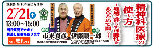 申込受付中:2/21(土) オンライン開催 「精神科医療の使い方 地域で暮らす可能性をあらためて問う」第104回こんぼ亭