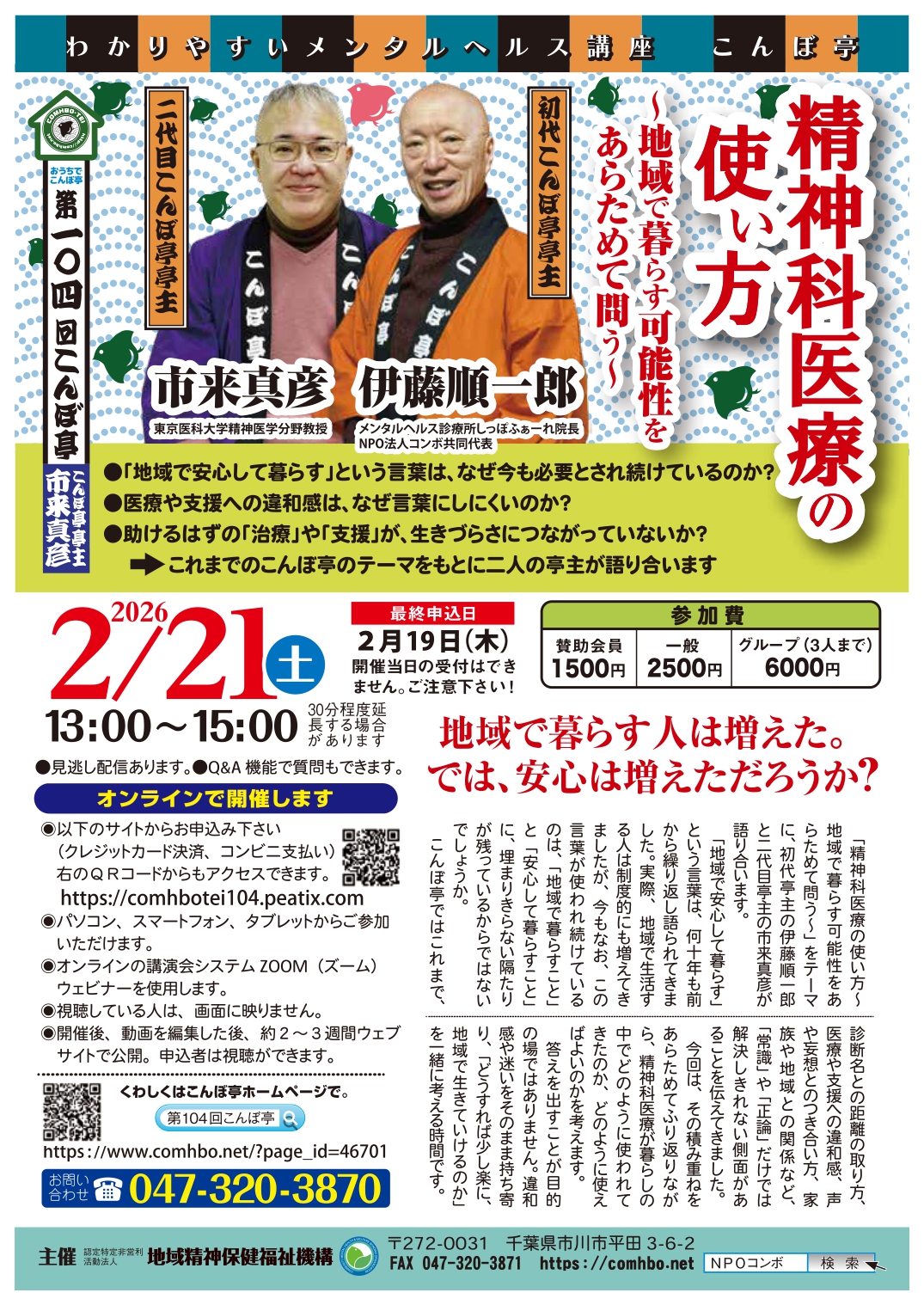 第104回こんぼ亭 (2026/2/21土曜日) オンライン開催