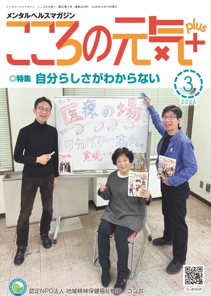 「こころの元気+」はメンタルヘルスマガジンで、毎月テーマが変わる特集と連載があります。